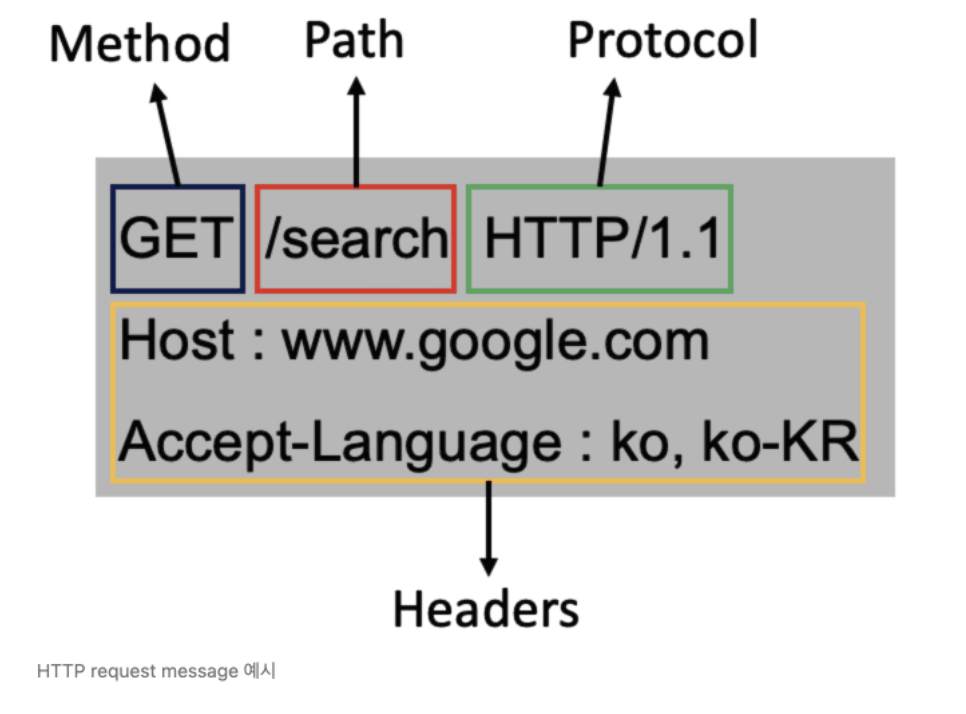 start line(method, path, HTTP version), headers, body로 이루어져있다.
