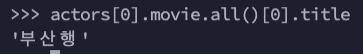 요약: Actor클래스(actors테이블) 에서 many to many field를 걸어 movie를 정참조