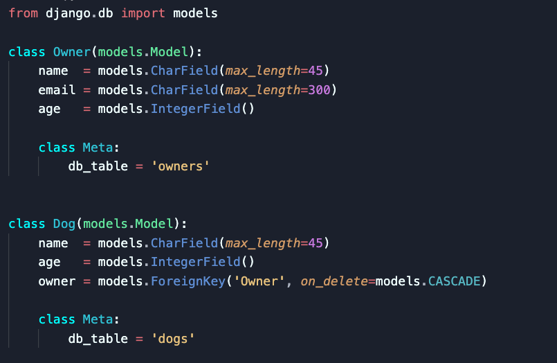 위의 dog에서 owner테이블에 접근하는 방식과 동일하게 접근했지만 AttributeError 발생